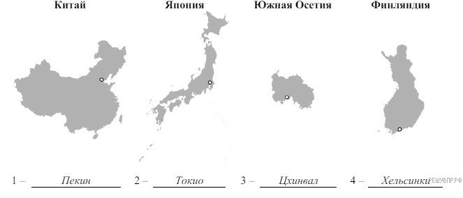 Версия для печати и копирования в MS WordНа рисунках представлены контуры стран-соседей России. Рассмотрите рисунки и выполните задания. Выберите из списка названия столиц этих стран и укажите их под рисунками.