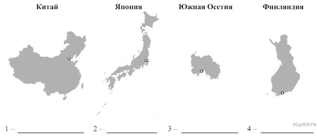 На рисунках представлены контуры стран-соседей России. Рассмотрите рисунки и выполните задания. Выберите из списка названия столиц этих стран и укажите их под рисунками.